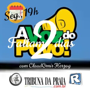 Confira este e outros destaques nesta segunda-feira, 23 às DEZENOVE HORAS, no jornalístico A VOZ DO POVO – edição n° 949/01, com ClaudOmir Herzog, aqui na Rádio TRIBUNADAPRAIA.com.br